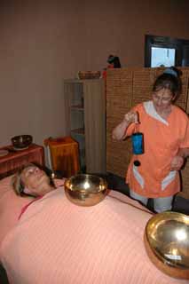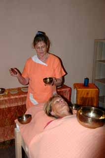 Durch das Spielen der Klangschalen / Klangliege entstehen Schwingungen, die spürbar sind und bis in die innersten Schichten wirken.